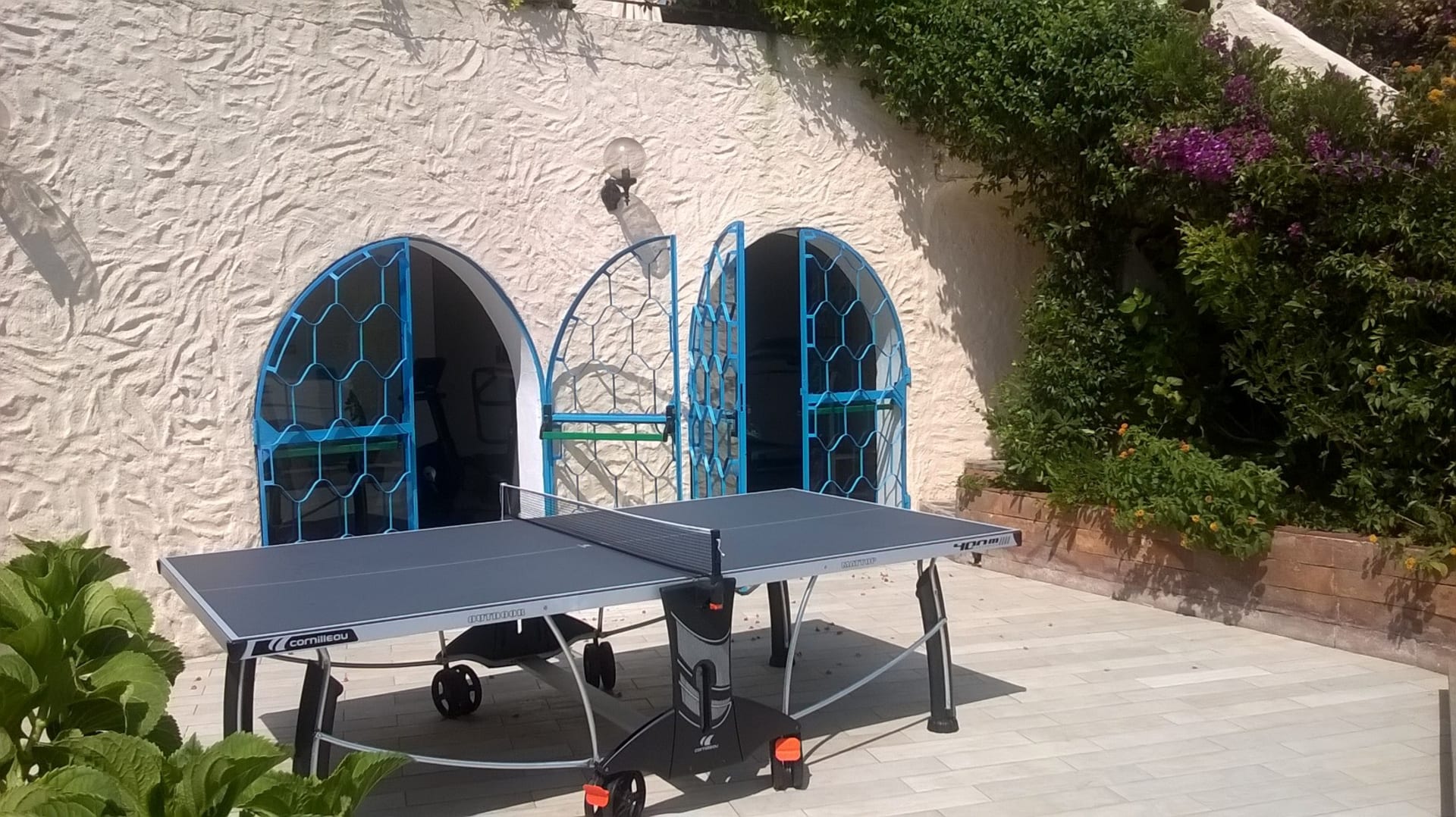 Sport & FreizeitTischtennis, hinter den halboffenen Türen ist der Fitnessraum mit Laufband, Stepper, Krafttrainingsgeräten, Yogamatten, ...