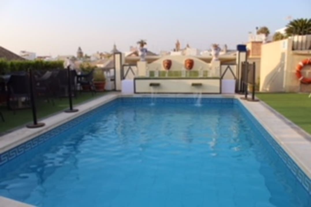 Ein herrlicher Ausblick auf Sevilla vom Pool auf dem Dach des Hotels Dona Maria in Sevilla