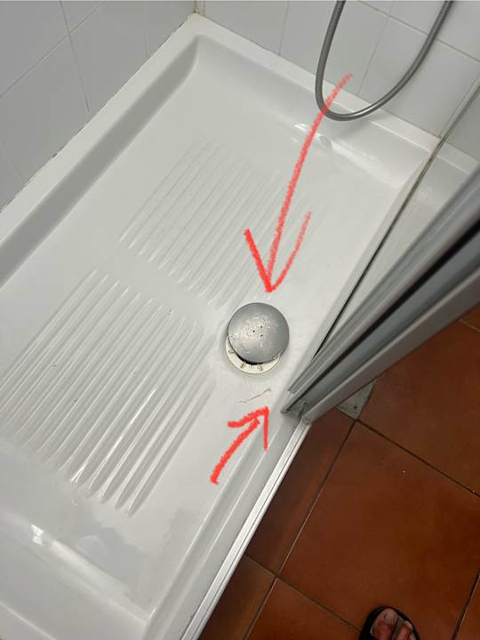 Scharfe Beschädigungen am Duschkabinenboden. Reparaturen finden leider nicht statt.