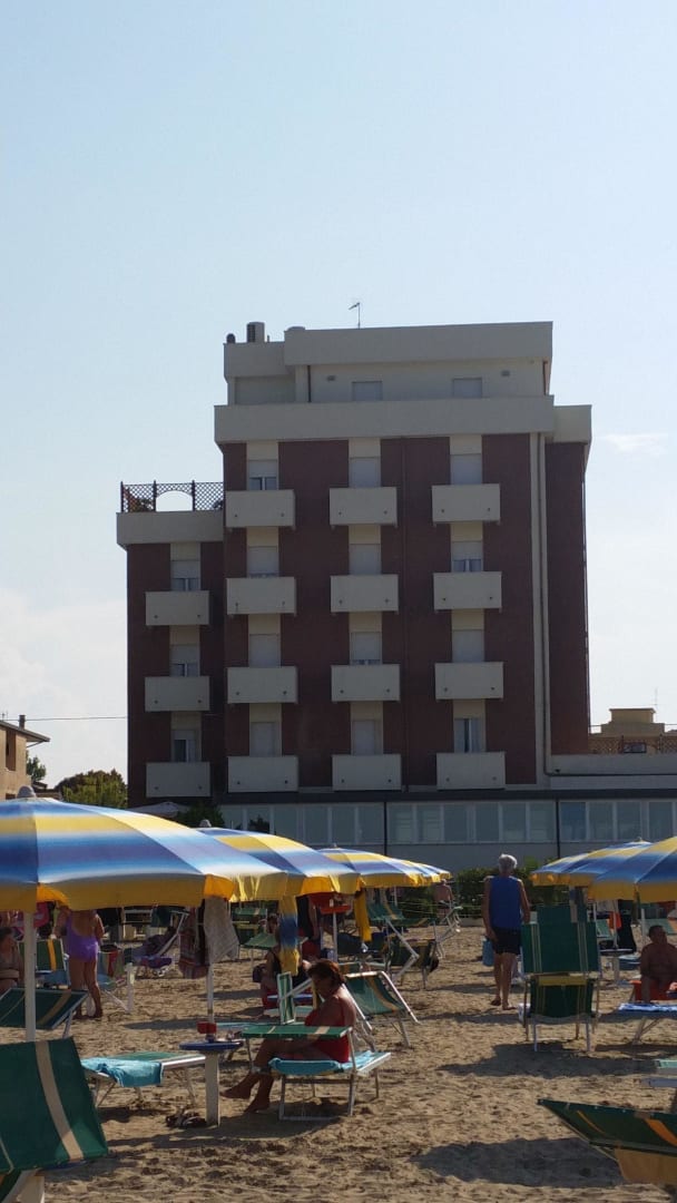 Blick vom Strand aufs Hotel