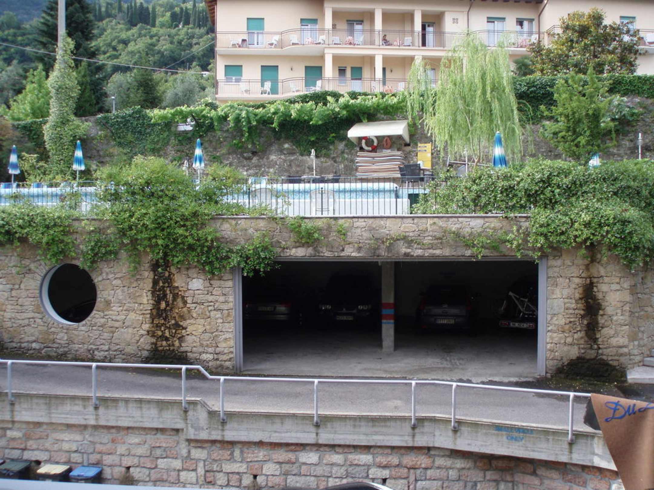 Unten Tiefgarage und darüber der Pool