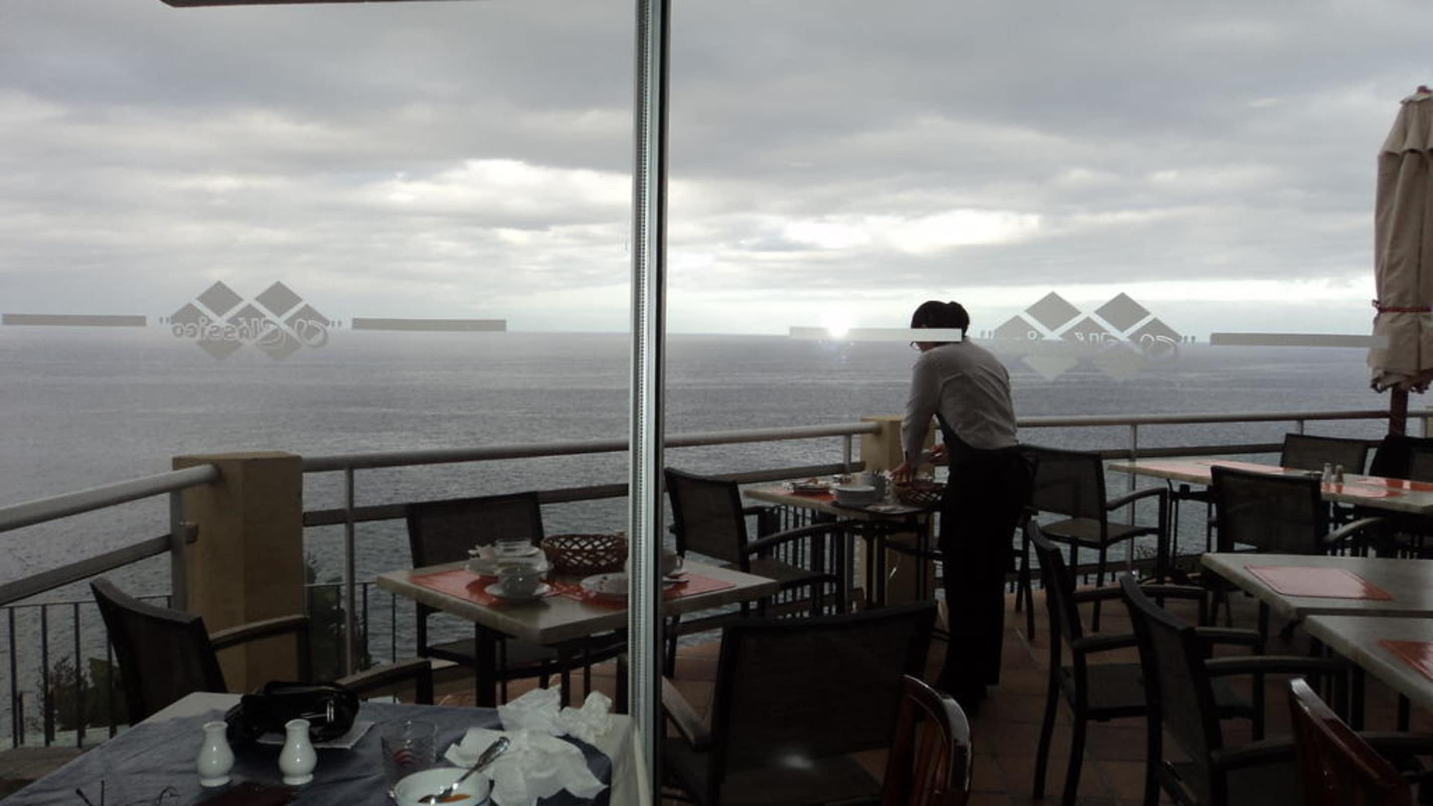 Blick vom Frühstücksraum auf die herrliche Terasse