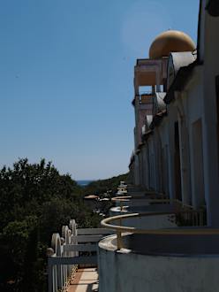 Auf die baufällige Fassade und den Meerblick