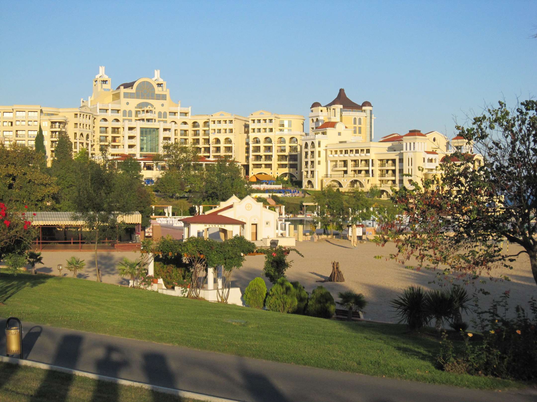 vom Hotelstrand Ende Blick auf dasselbe, riesige Anlage