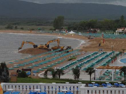 Liegen, Schirme und der Sandstrand wurden aus dem Meer geholt.