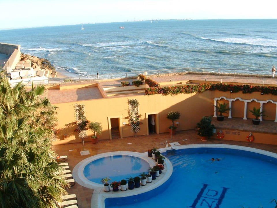 Blick vom Balkon über den Pool auf's Meer