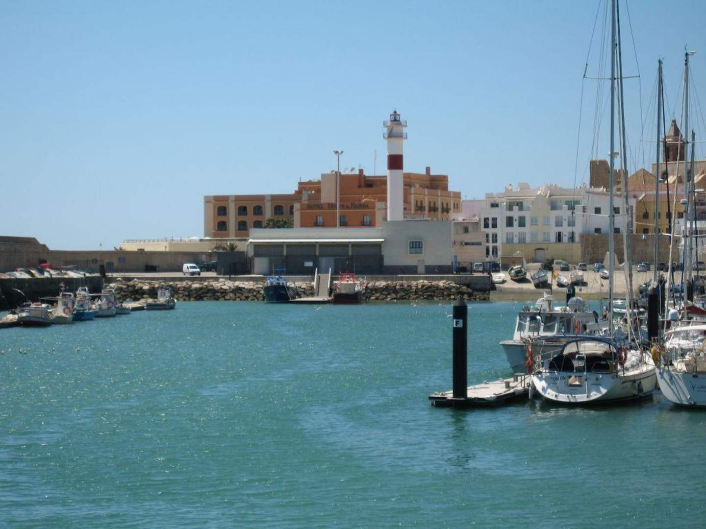 Blick vom Hafen zum Hotel