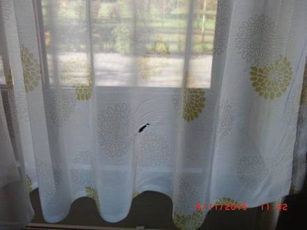 Widok z okna. Piekna firanka!Jak widac ewidentna dziura w firanie. Jesli sie sprzata i pierze firanki to chyba jest to widoczne.Chyba ze zle widze?