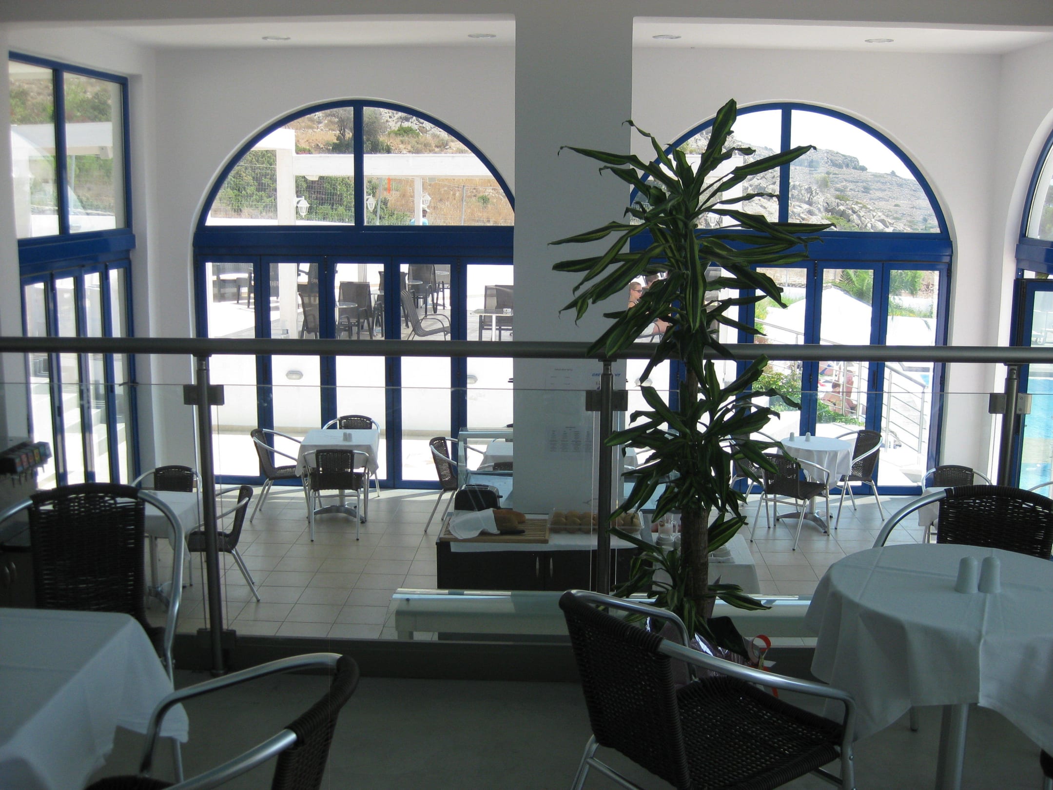 Blick auf den Innenbereich mit dahinter liegendem Außenbereich.