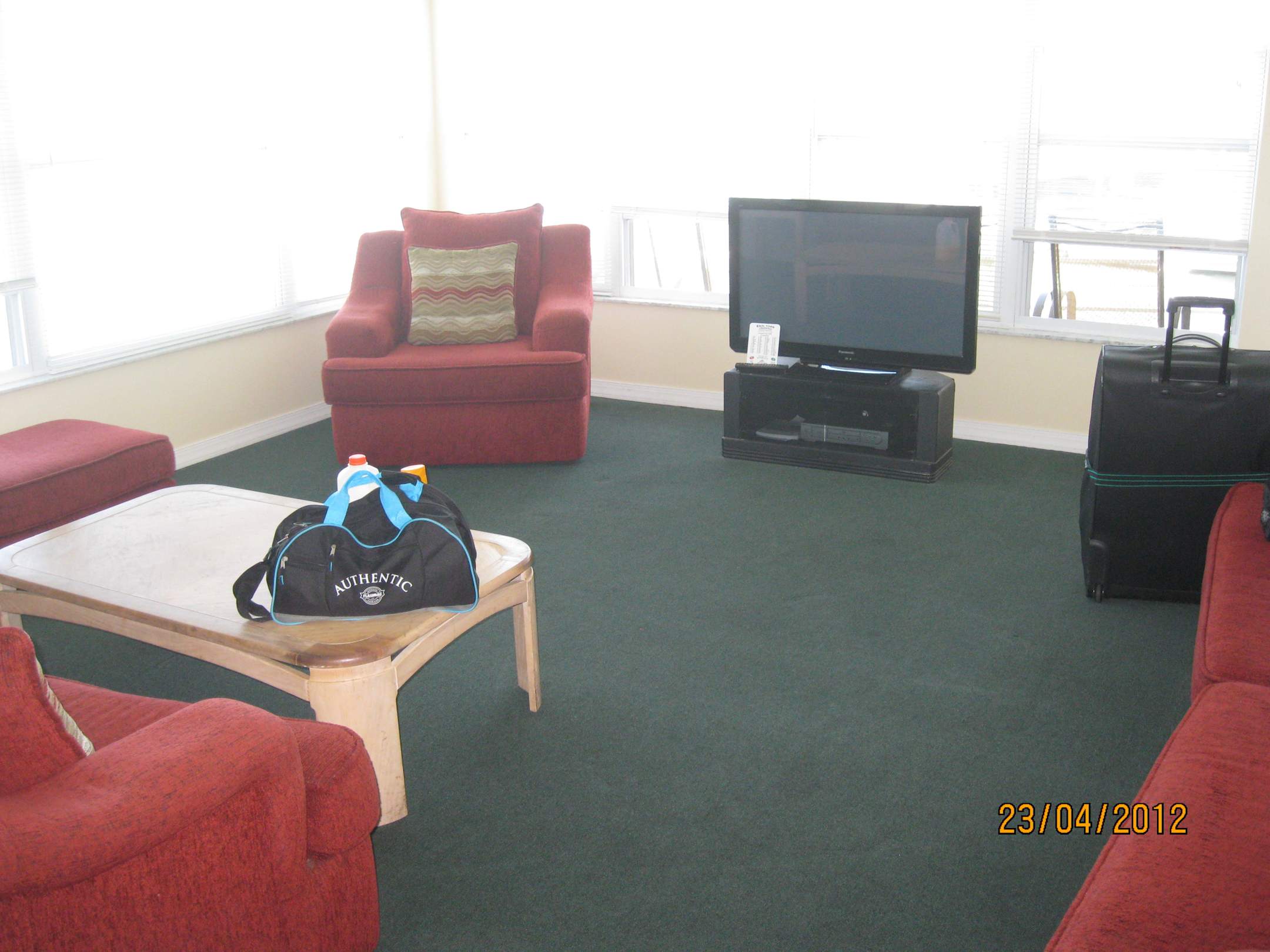 Good comfortable living room, very light with windows on 2 sides.