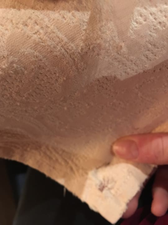 Löcher in den Tischdecken und dreckige Teller am Frühtücksbuffet