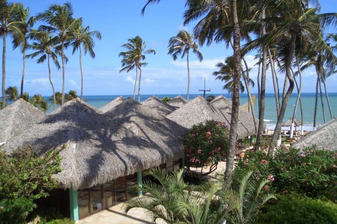 Blick von Hoteletage auf Restaurantbereich und Strandanlage