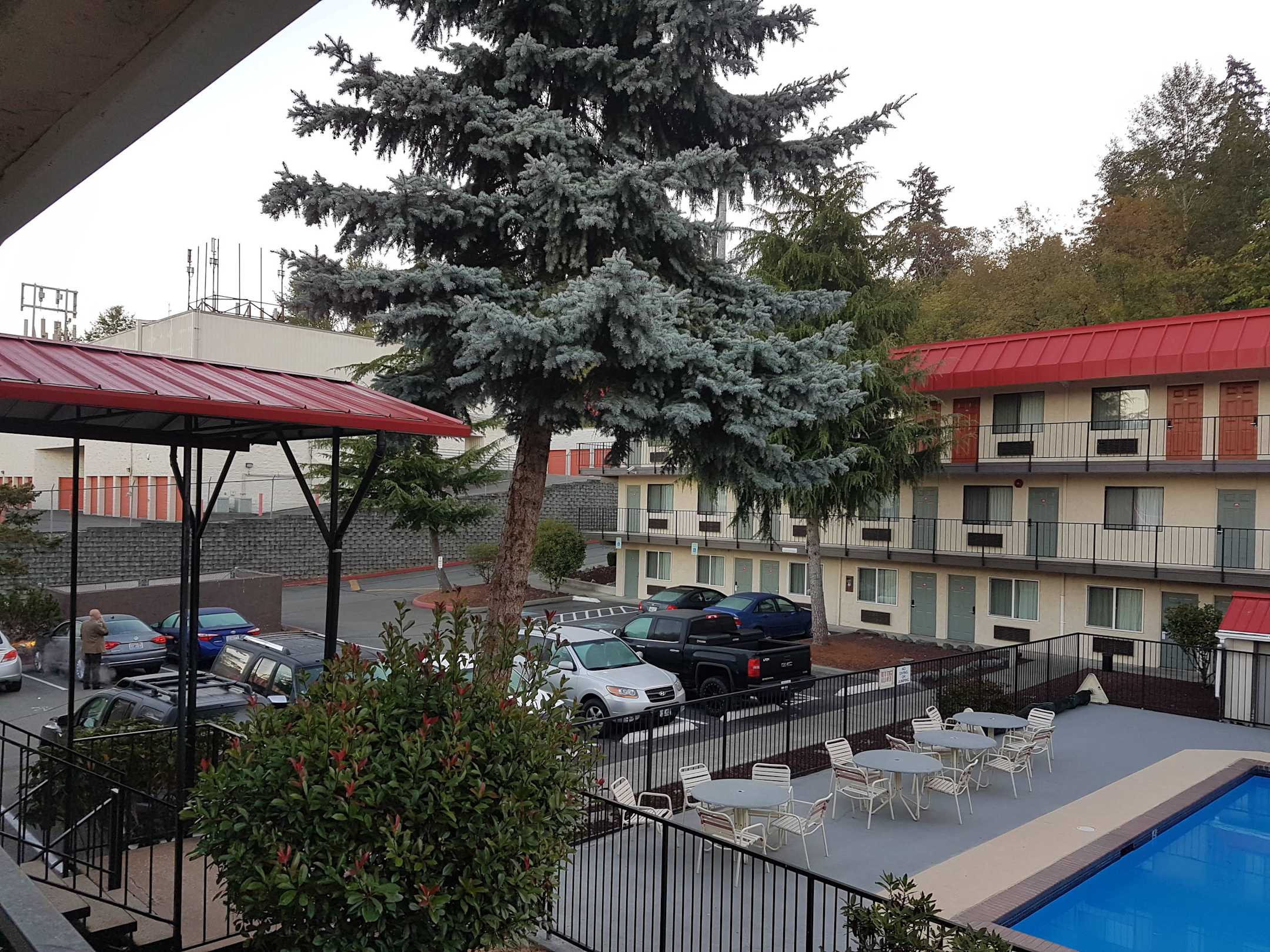 Pool und Parkplätze
