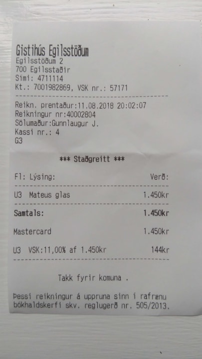 Ein Glas Wein für 1450 isländ. Kronen (ca. 10,30 €) !