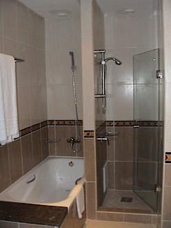 Badezimmer mit Dusche und Badewanne