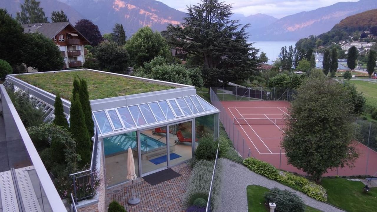 Hallenbad, Tennisplatz und Gartenanlage