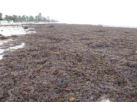 Das Bild zeigt das angeschwemmte Seegras nach einer stürmischen Nacht mit viel Regen und Gewitter