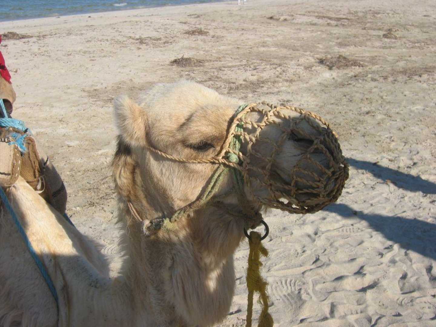 Am Strand sitzt ein Dromedar