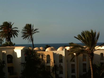 Blick über das Hotel aufs Meer