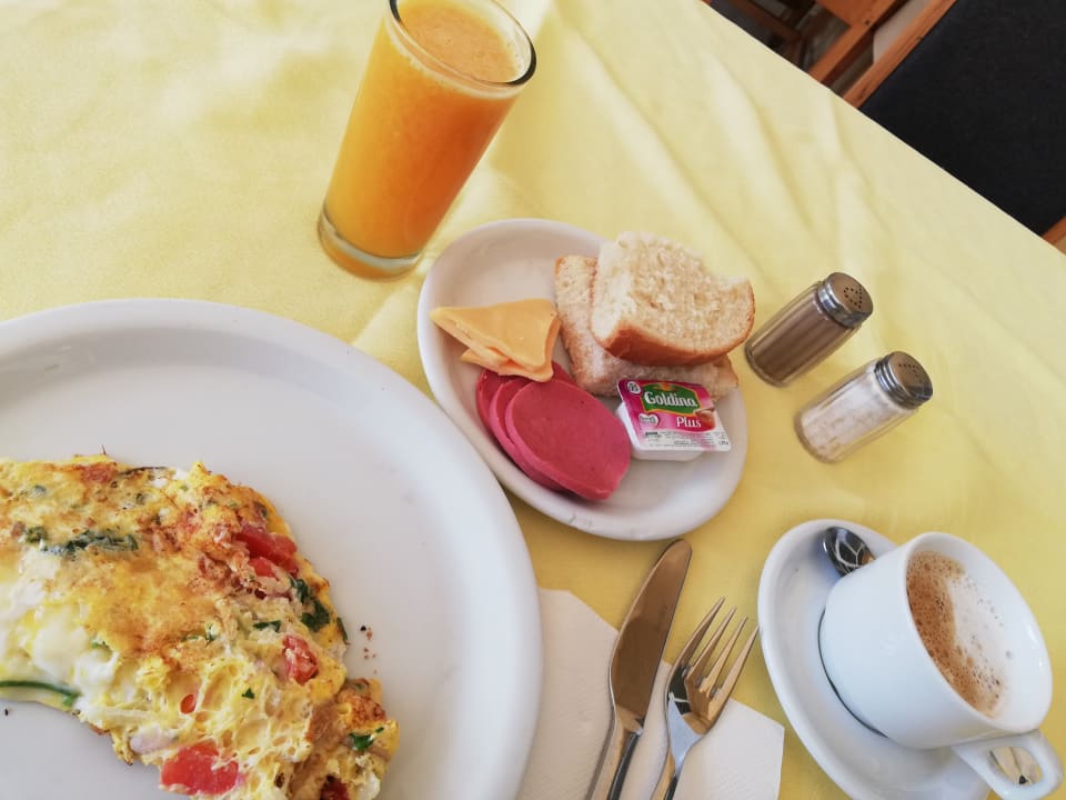 Kleine Auswahl an Frühstück...frisch gepresster O-Saft soll ab mitte 2019 inkl. sein. Momentan noch 3 Dinar das Glas. (1 Euro Ende März = 3.38 Dinar) Marken bekommt man an der Rezeption.