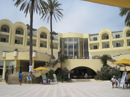 Hotelansicht zum Pool & Strand
