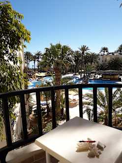 Blick von meinem Balkon mit Anlage und Meer.