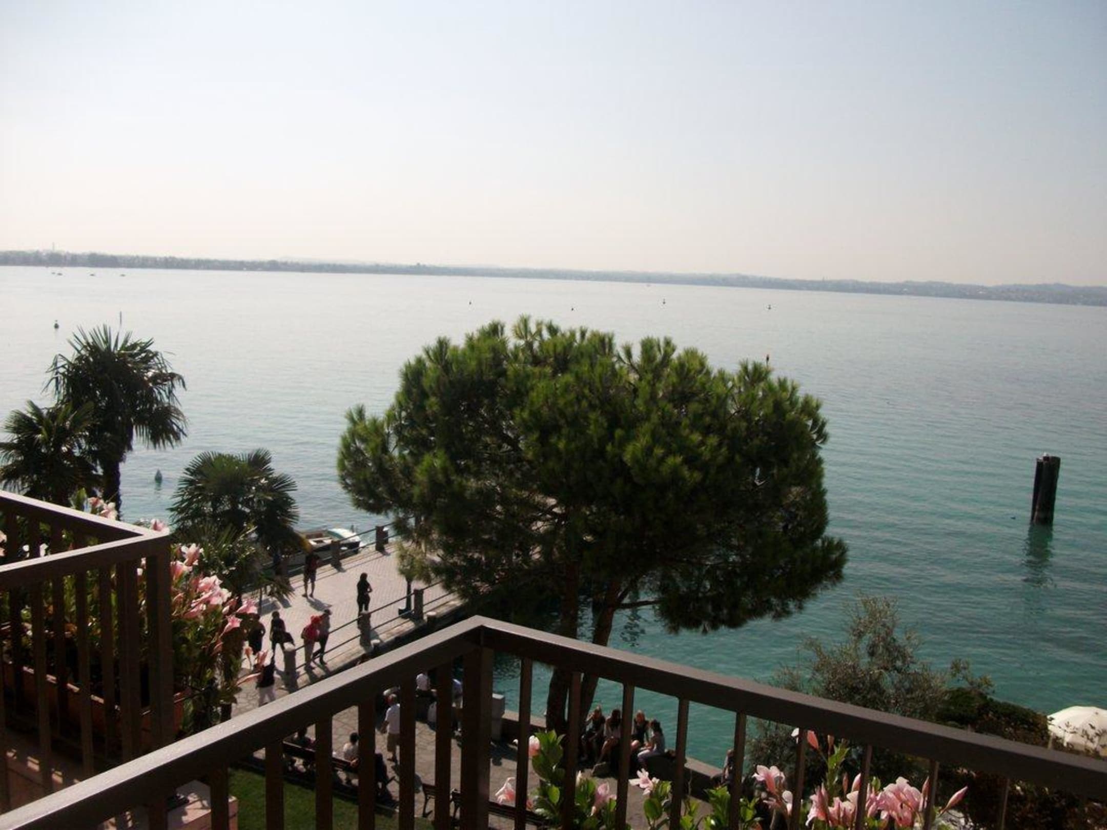 Blick vom Balkon auf den See und die Fährstation