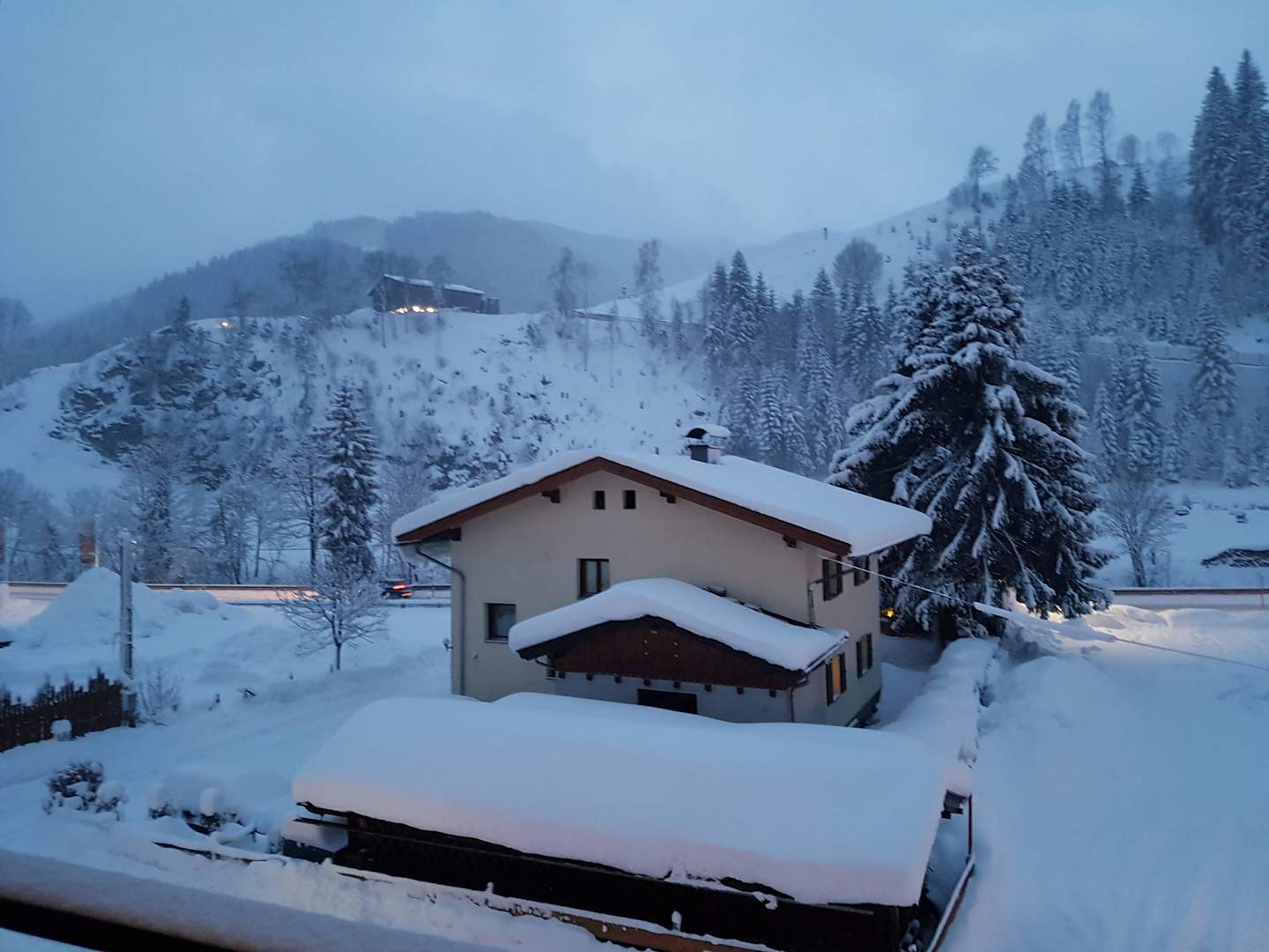 Ausblick aus Zimmer - soviel Schnee :-)