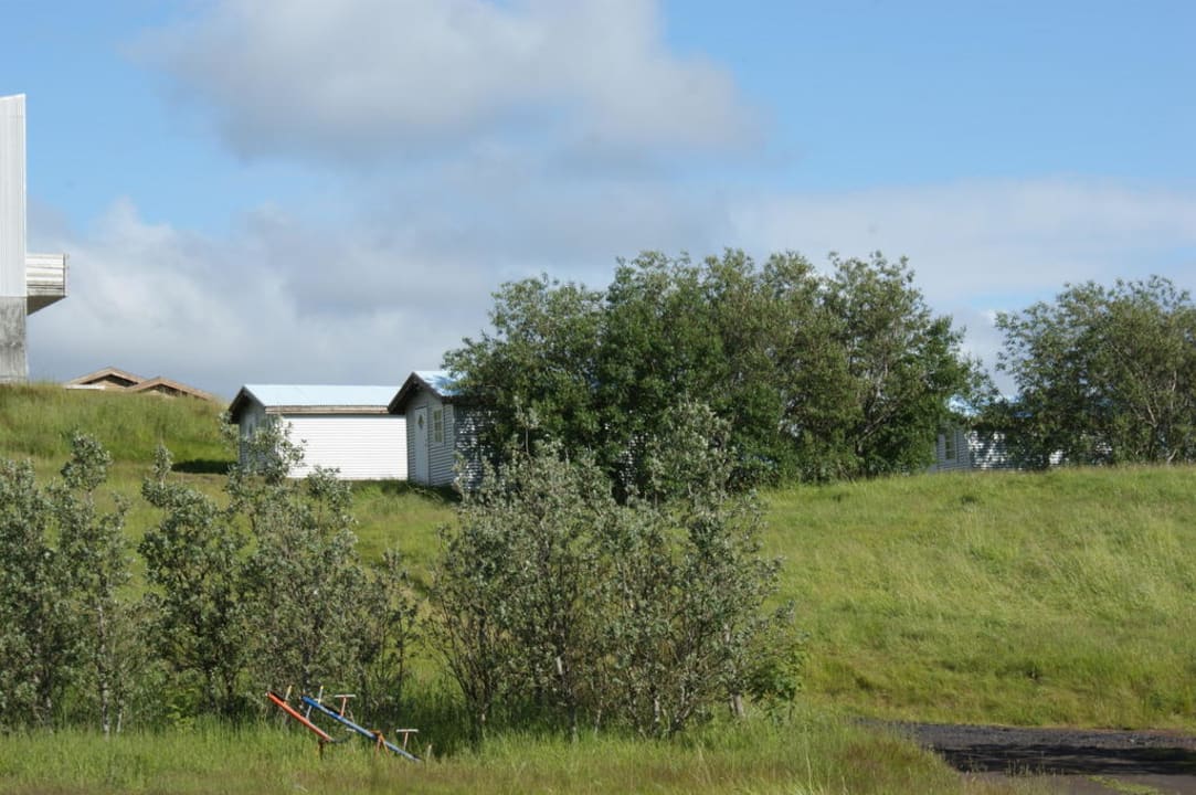 Es gibt noch eine Reihe von neueren Einzelcottages, welches etwas näher zum Hoteltrakt liegen (weiss, mit blauen Dächern). Jedes Cottage hat einen eigenen Parkplatz.