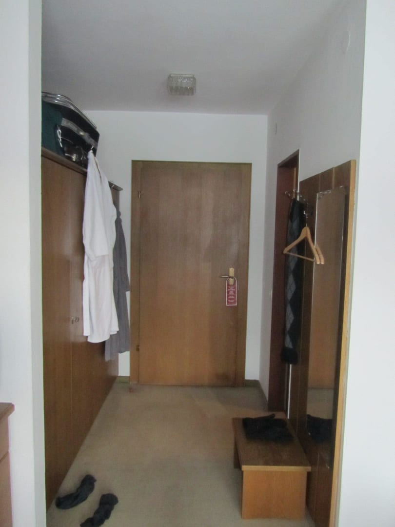 Eingangstür, Kleiderschrank und Eingang zum Bad