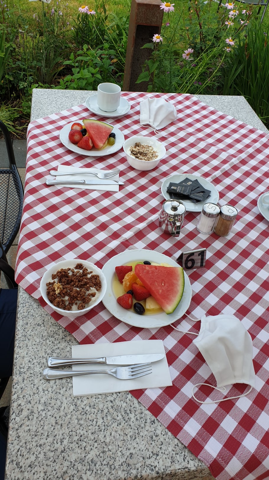 Corona Frühstück mit Müsli und frischem Ost