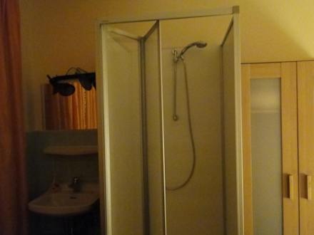 Waschbecken, Beistelldusche, Schrank