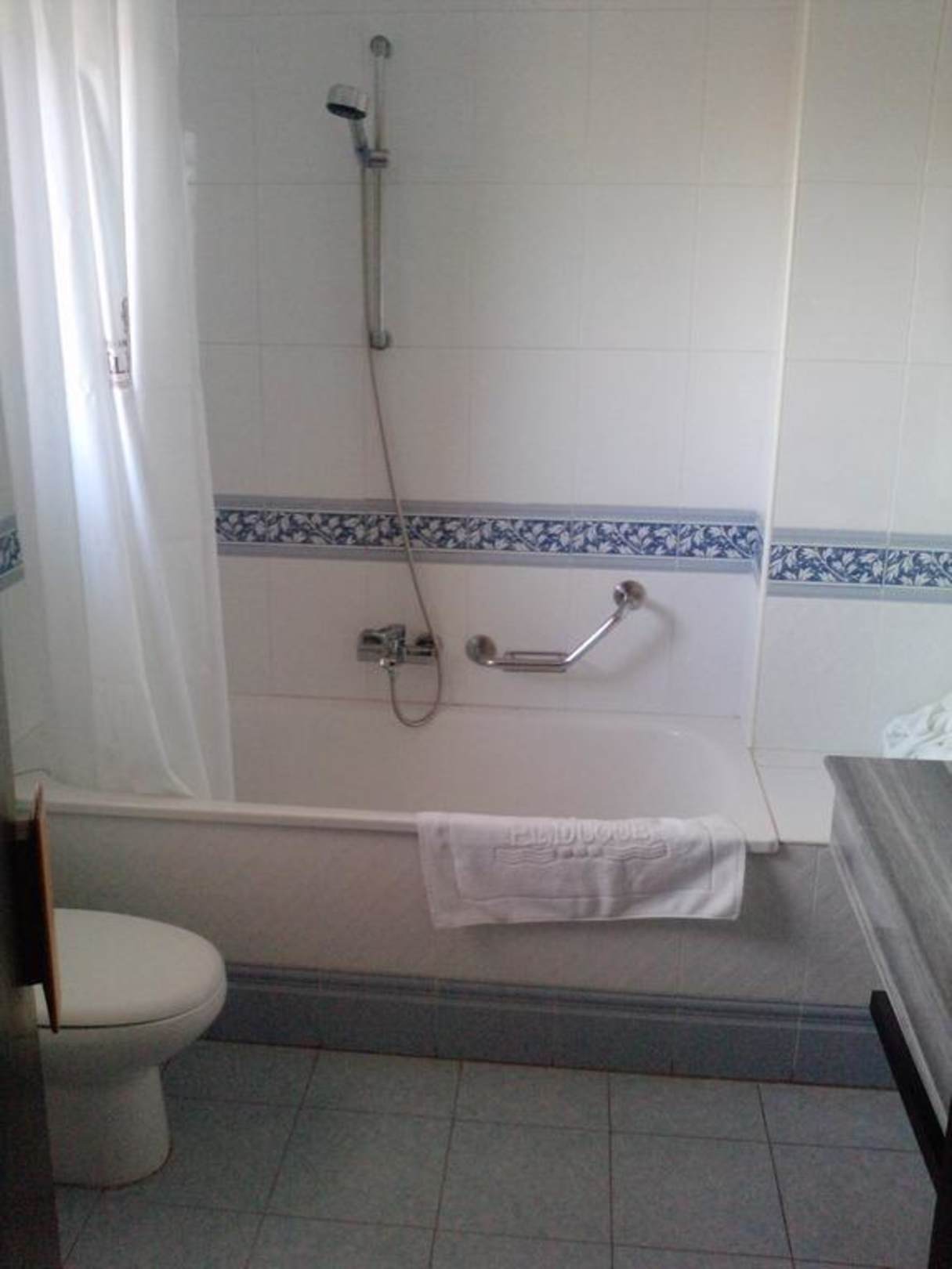 Bild zeigt die Badewanne mit Dusche unseres Badezimmers in Haus B 2.OG.