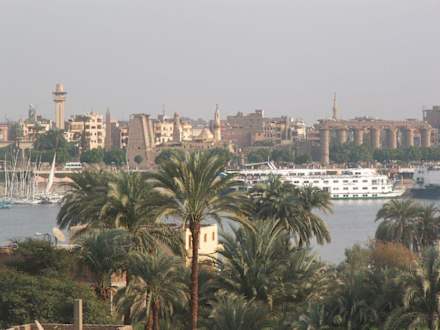 Blick von der Dachterrasse auf Luxor
