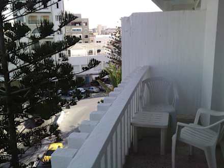 kleiner Balkon, Aussicht nach rechts: Straße, Aussicht links: Strand und Meer