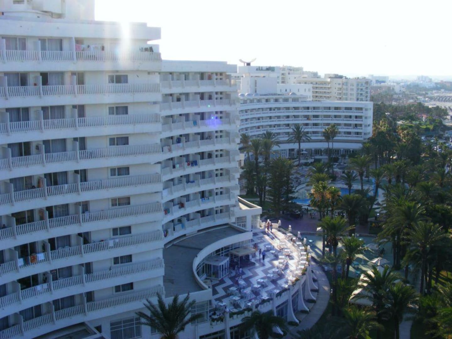 Widok na hotel z jego dachu.