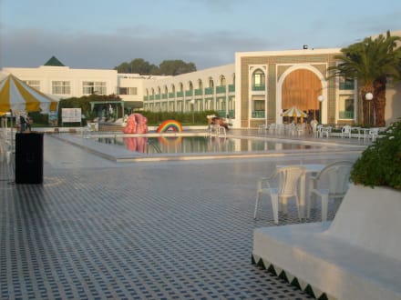 Pool mit Blick auf das Hotel