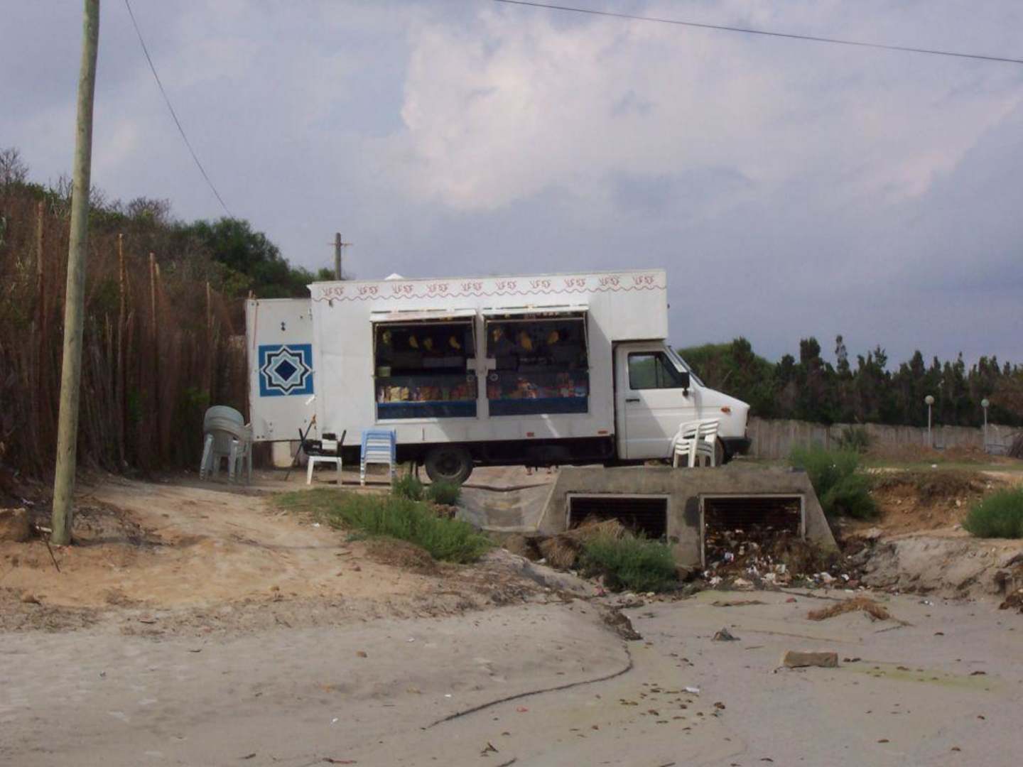 Günstiger als im Hotel: Pizza, belegte Baguettes, Getränke, Früchte usw. mit angenehmer Bedienung und ein paar Tischen und Stühlen mit Schirmen zum Verweilen am Strand