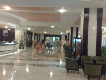 Links sieht man die Rezeption, rechts wäre die Eingangstür.