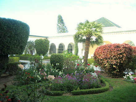 Garten vor dem Hoteleingang mit Brunnen