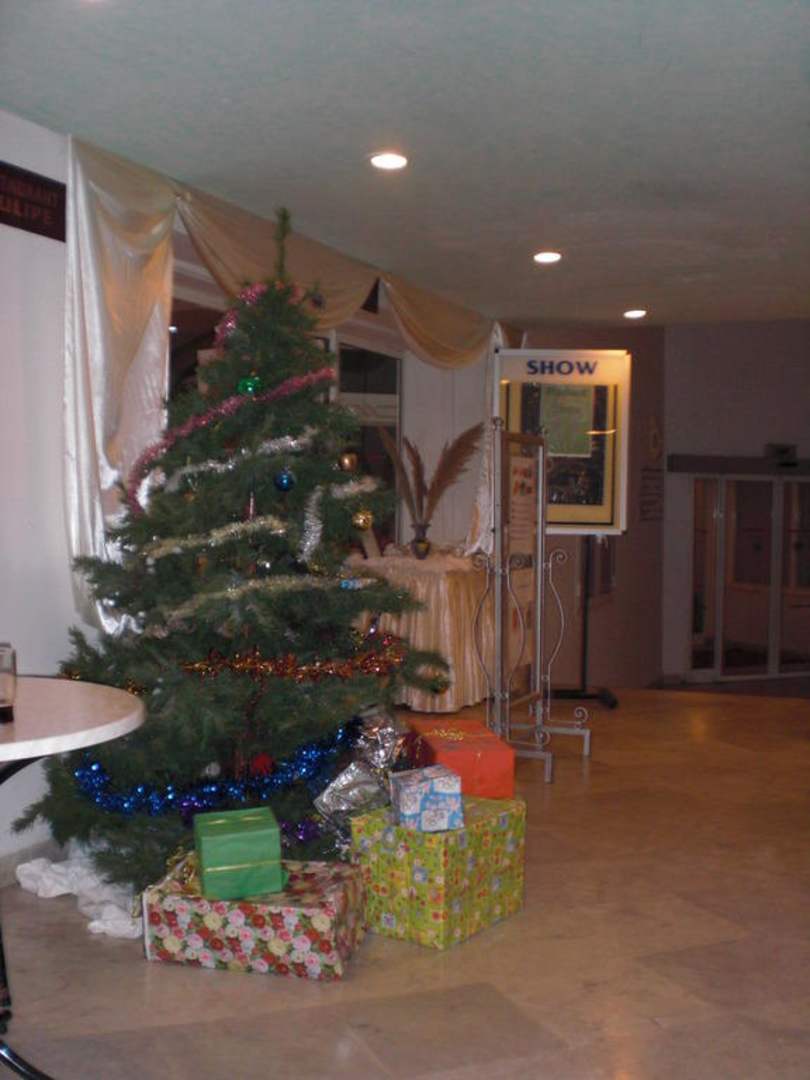 Tannenbaum mit Geschenken vor dem Restaurant