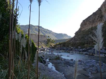 Blick in den Canyon unterhalb der Anlage bei Sonnenuntergang