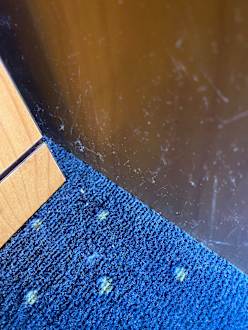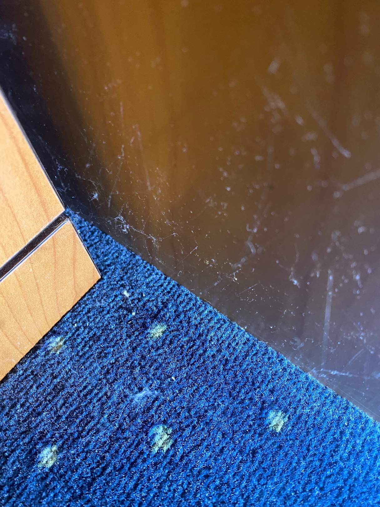 Spinnweben zwischen Nachtschrank und Kleiderschrank