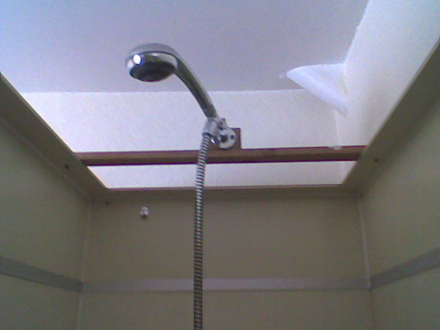Duschkopf mit Holzbrett. Sehr originell!!!