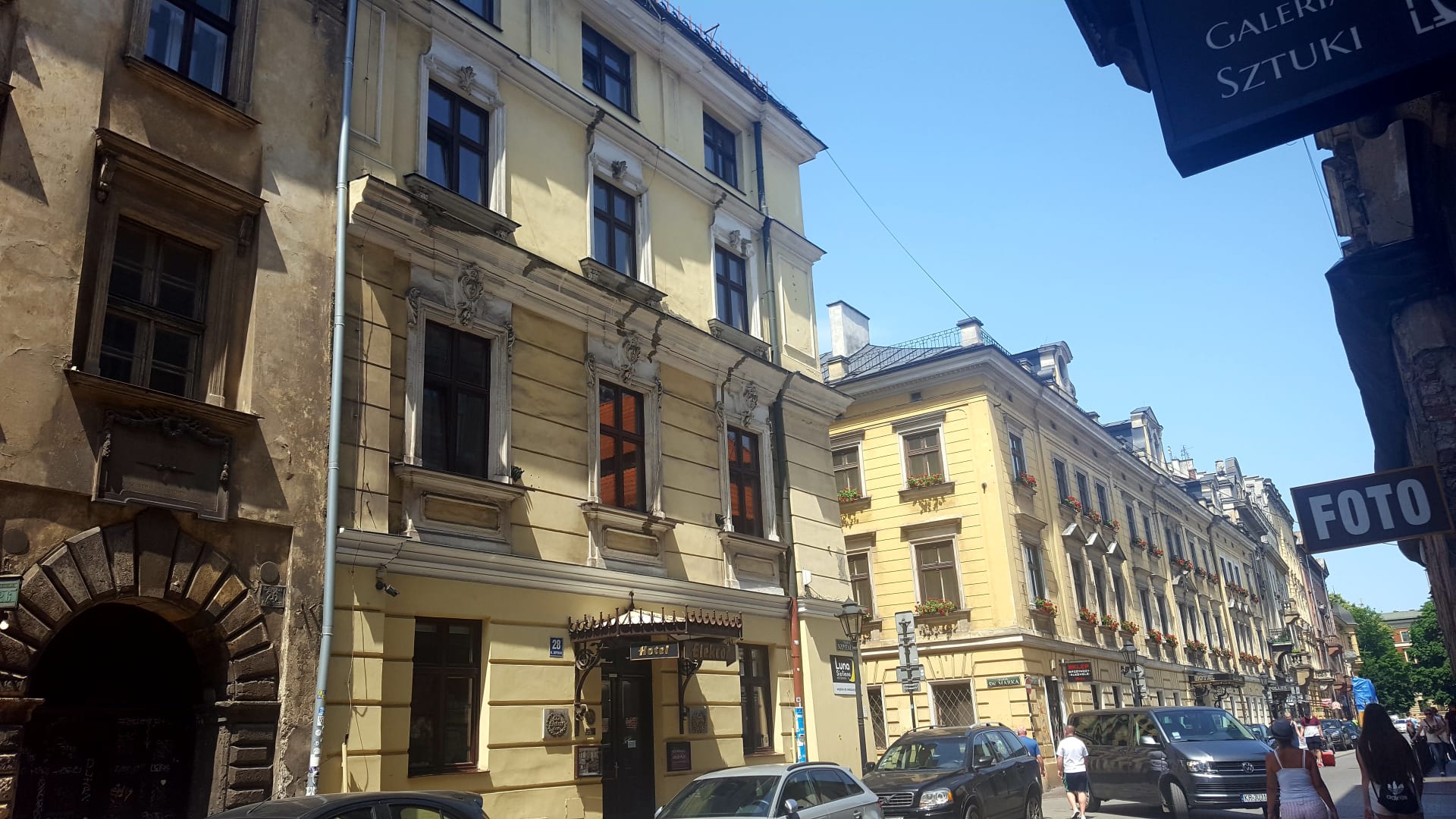 Hotel Elektor ist das gelbe Mietshaus links