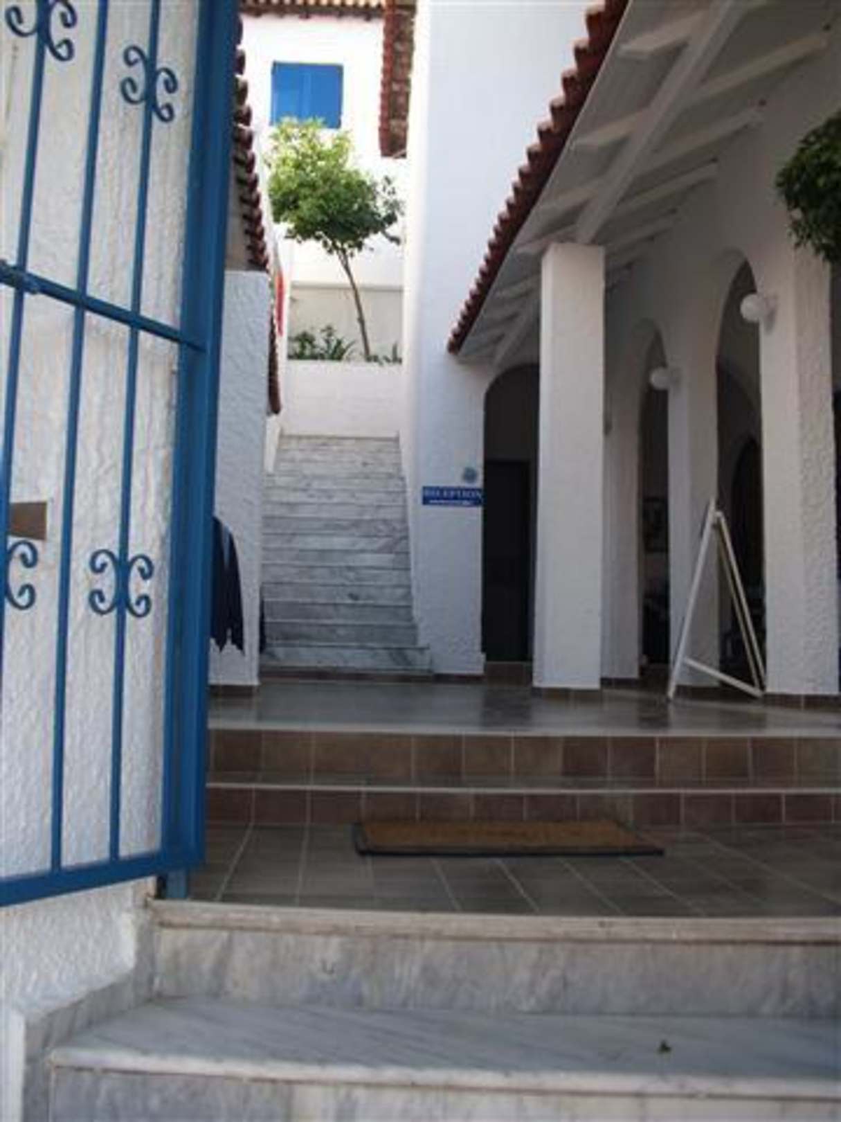 Blick von der Straße ins Hotel