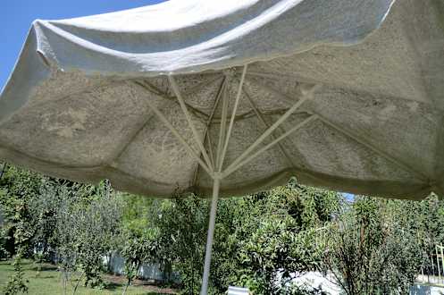 Dreckiger Schirm mit Stockflecken
