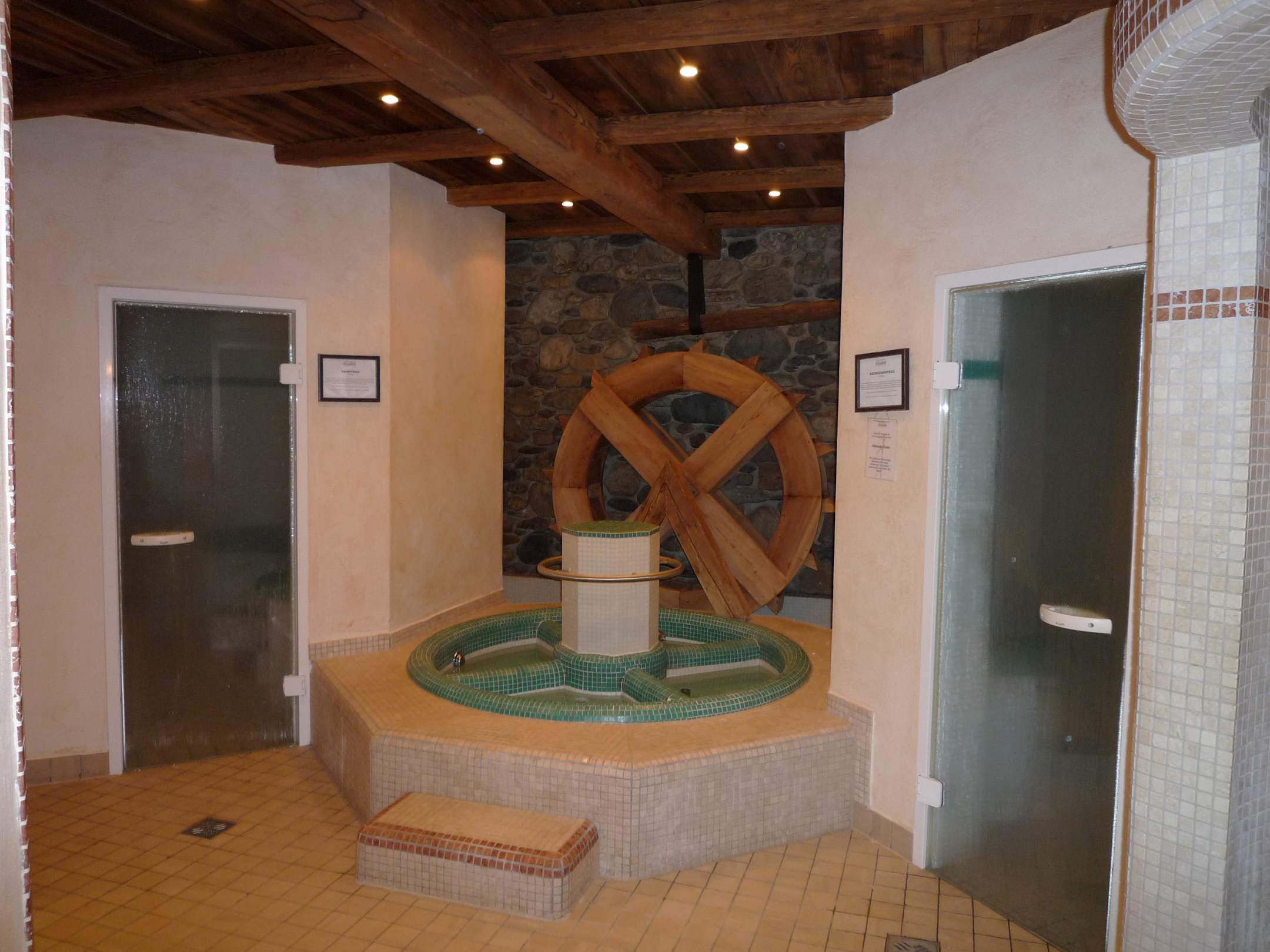 KneippbeckenBlick auf das Kneiprondell in der Sauna. Lionks und rechts die Dampfsaunen. In der rechten war jeden Tag ein anderes Aroma.!