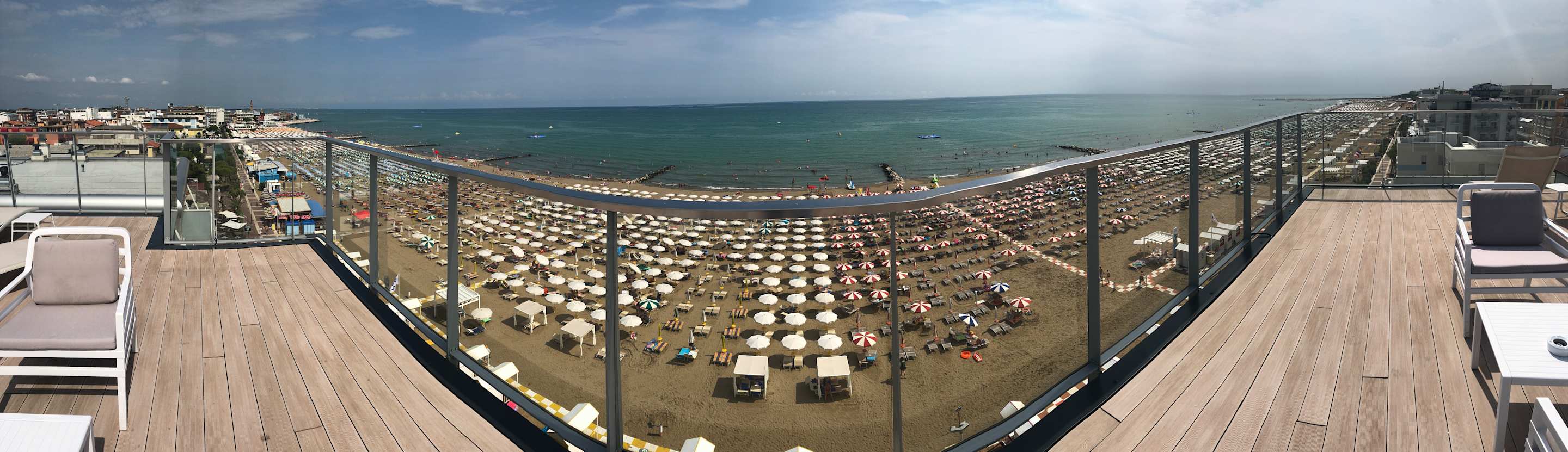 Panorama vom Sonnendeck im obersten Stockwerk (Jacuzi) auf den Strand