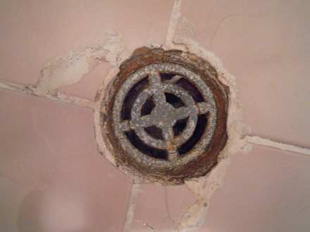 Abfluss vor der Dusche im Bad